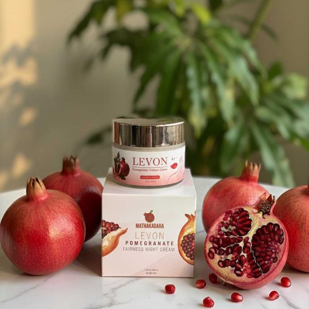 Levon Pomegranate Fairness Cream is a natural, non-toxic alternative to synthetic bleaching creams, leveraging pomegranate peel and fruit extract to enhance skin brightness without side effects.