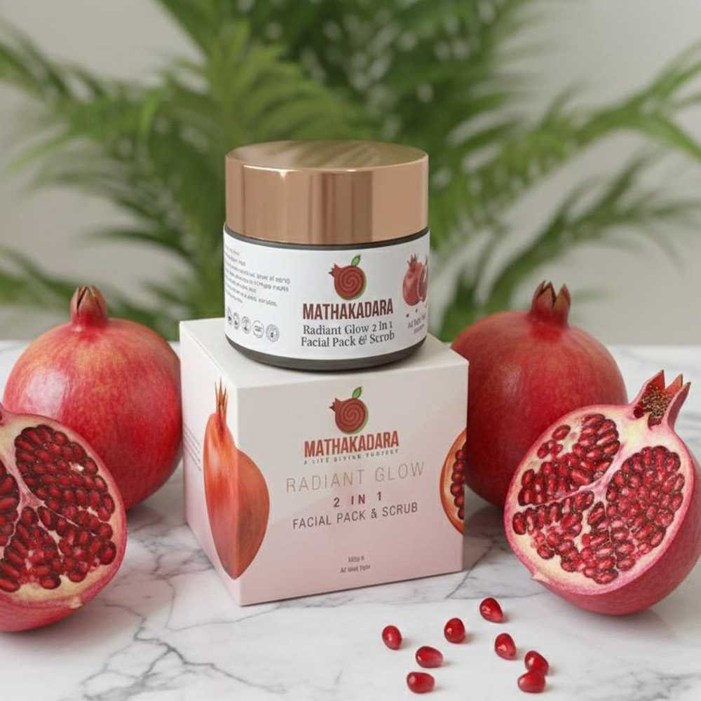 Experience the power of pomegranate peel with this herbal pack made of pomegranate peel powder, Multani Mitti clay, honey, sandalwood, moringa leaf powder, and neem leaf powder. It brightens and softens skin, reduces aging signs, and cures pimples and marks, suitable for all skin types.