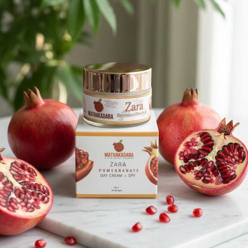 Our blend of Pomegranate Peel Oil, Saffron, Aloe Vera & Guduchchadi Oil naturally brightens, hydrates, and protects your skin — keeping it youthful, smooth, and glowing.